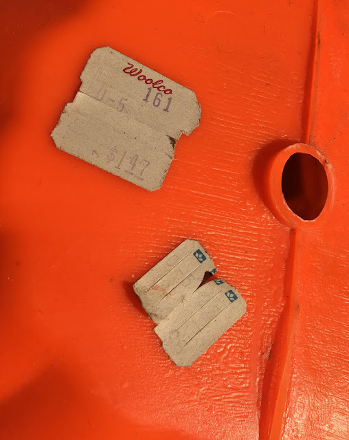 It’s the sort of thing that begs me to consider its entire history, from production design to the day I bought it. I imagine someone at a drafting table in the mid ‘80s, poring over a book of clip art. They pause upon seeing a skeleton in a tuxedo. (And who originated that?) Tux-skeleton became the star of the bucket, while the spider and web were necessary to fill the space. The choice of typeface is perfect. I wonder if this container was ever used during trick-or-treating. Its utilitarian value likely ensured its survival in someone's garage all these decades. It sure came in handy when they wanted to paint something green.