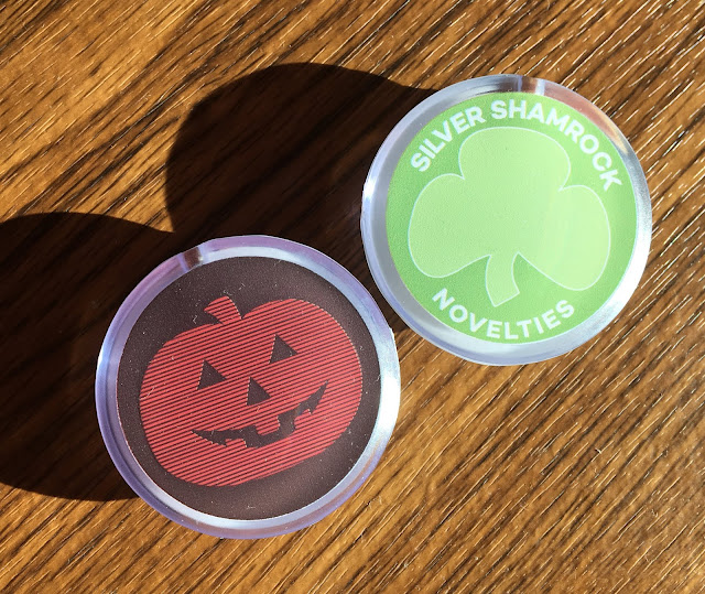 There is one other way to obtain amazing Halloween goods that is superior to them all. Occasionally friends have gifted me some wonderful items. Like this Living Skull key chain that my friend Eddie Guevera gave me years ago. It falls squarely into this ‘no brand’ type of stuff. I adore it and its blood-splattered grid. “When put it in your palm it will murmur with terrible sound & gleam in eyes.” Oh, that is the stuff.