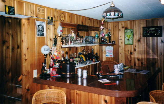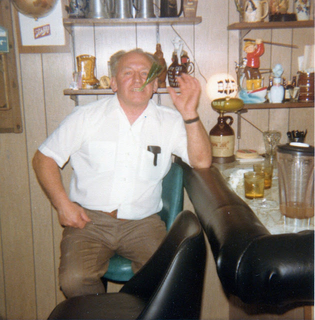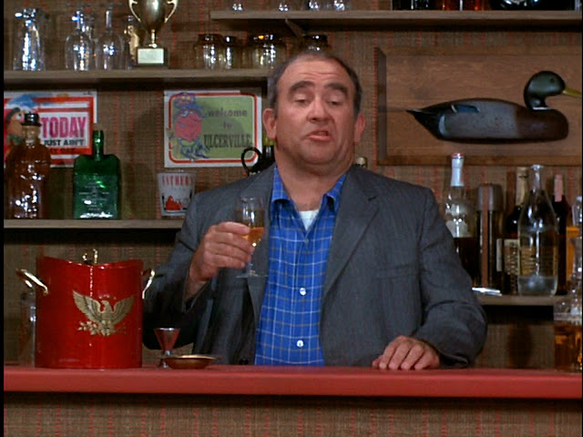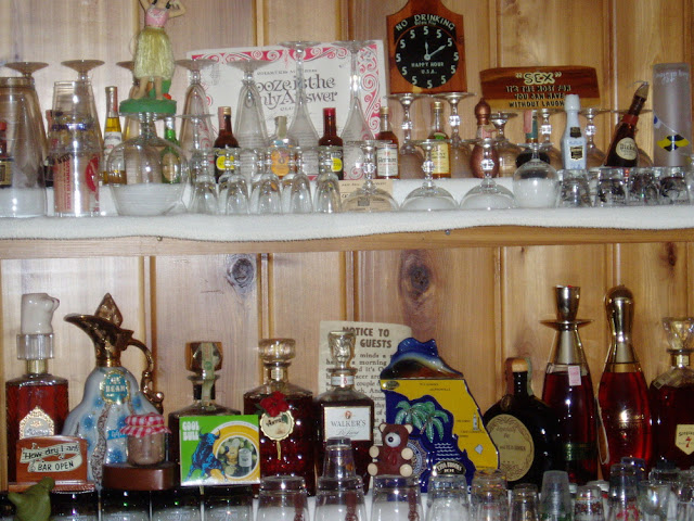 More importantly, it represents one of my favorite forms of novelty: humorous barware from the mid-century. I love the notion of the basement bartender keeping a stockpile of sight gags on hand to keep things lively. There were no bar shelf pictorials in Good Housekeeping, nor was there a "man cave" aisle in Hobby Lobby, and yet people instinctively knew how to decorate this corner of the house. The booze and the decor worked harmoniously to create a casual atmosphere intended to maximize comfort and minimize pretense.