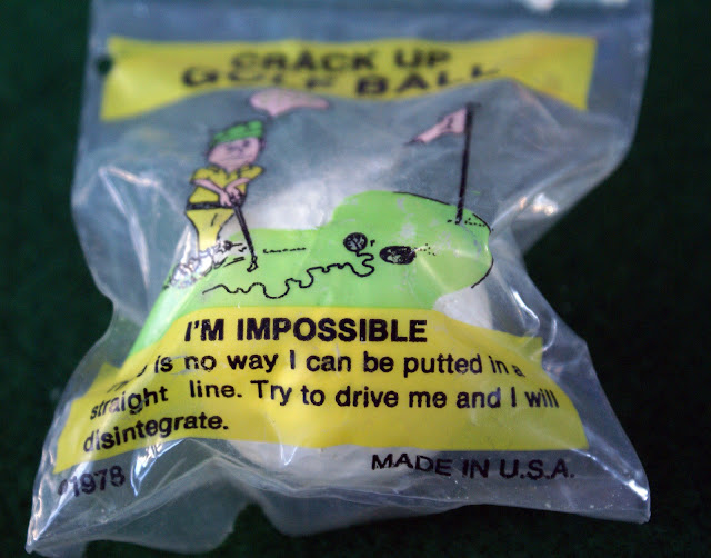 I've tested my share of trick balls (billiard, baseball, and golf) and none of them move in squiggly lines like the one shown on this deceptive package. However, the Crack Up golf balls are made of some compressed powdery stuff that will indeed fly apart when hit hard enough. The down side is that it lacks the shine or markings of a real ball so good luck fooling anyone. I wish I could travel back to 1978 and warn everyone.