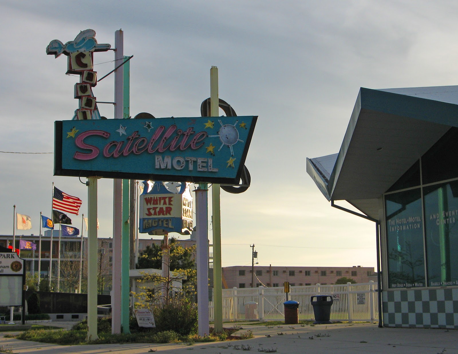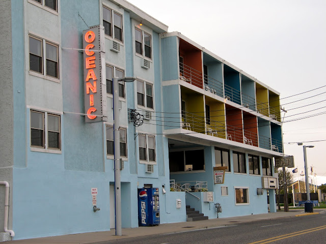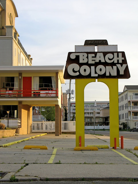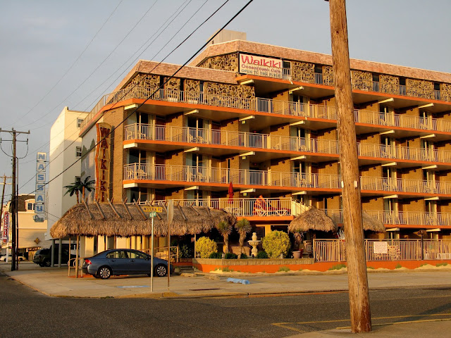 But somehow, in all my years of nostalgia-obsessed intenetting, I never learned that the entire town is a sanctuary for 50s and 60s hotel design! It was mind-blowing, block after block of "doo wop" architecture (also known as Googie, or Populuxe style). The area is known as the Wildwoods Shore Resort Historic District where the structures are saved and restored by the The Wildwood Doo Wop Preservation League.