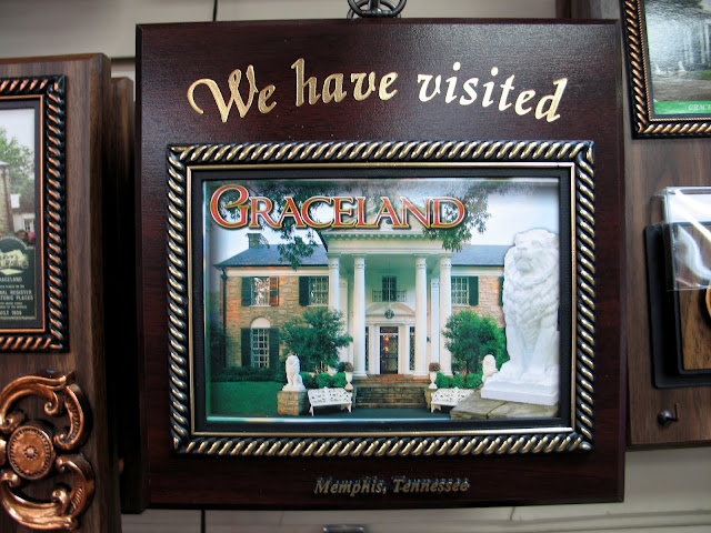 Elvis's house closed, but the stores didn't. You could divide the souvenir shops into three tiers. The gift shop in the Graceland complex offered the officially ordained shopping experience. It's full of the highest order of Elvis gear at premium prices. Right next door in the Graceland Crossing shopping center was Souvenirs of Elvis Presley Boulevard. I was disappointed by it's carefully controlled inventory. It's like they had a couple dozen focus group-approved designs that were applied to the standard types of merchandise.