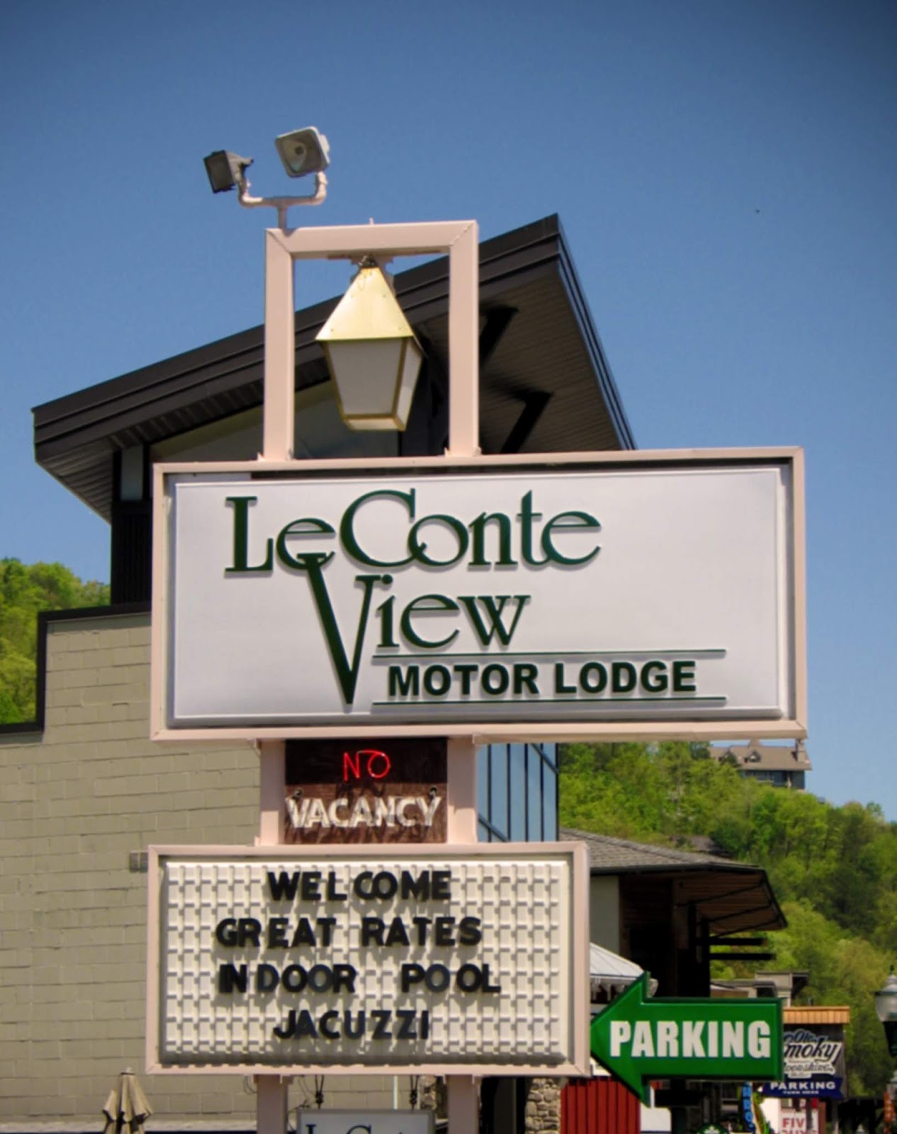We spent the bulk of our time in Gatlinburg. It's nestled in a valley beneath tree-covered hillsides which, to me, sets it apart from other tourist meccas like the Wisconsin Dells, Orlando, or Branson. I'm also sentimental about it because it's the first place I've ever been where multiple haunted walk-throughs were plopped right in the middle of a shopping district. To my joy, many businesses on the Gatlinburg strip had gone unchanged since my first visit as a teenager. So I made it a goal to take photos of things that looked more or less like they did thirty years prior.