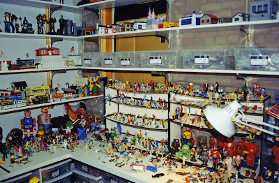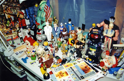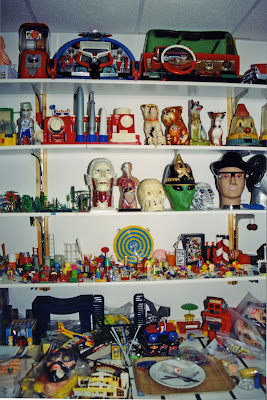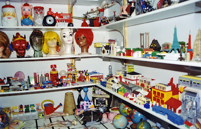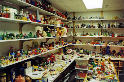They kept plastic stuff on the shelves.Regarding these photos Mr. Anderson adds "That's a fraction of the plastic stuff. We no longer display it on shelves-dust multiplied by tens of thousands. It's now in plastic Ziploc bags, inside of plastic Sterilite containers, in storage. Unfortunately very hard to see. But for me the art I'm interested in is not so much the object as the photo and finished color Photoshop version of the object-that's the Pop Art. We figured if Andy Warhol could take low, common objects and elevate them to the level of fine art, we could take this plastic stuff and elevate it to the much less ambitious level of stock art."